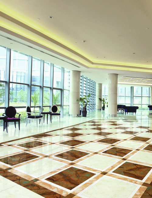 表面不吸水、硬度高、抗汙、易清潔,無須石材繁複的打蠟保養清潔,亦擁有石材不易達到之亮度與潔淨感。採一次燒成,熱膨脹伸縮極小,適用於建築物的內外牆面、地面裝飾。